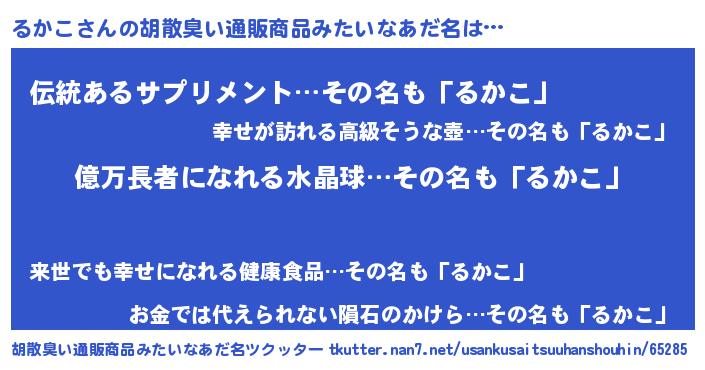 | 男性向けラノベタイトル風あだ名 | 『るかこに滅ぼされるだけの簡単なお仕事です』 |
