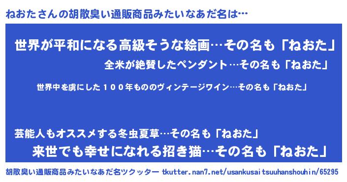 ねおたさんの胡散臭い通販商品みたいなあだ名をツクッター!