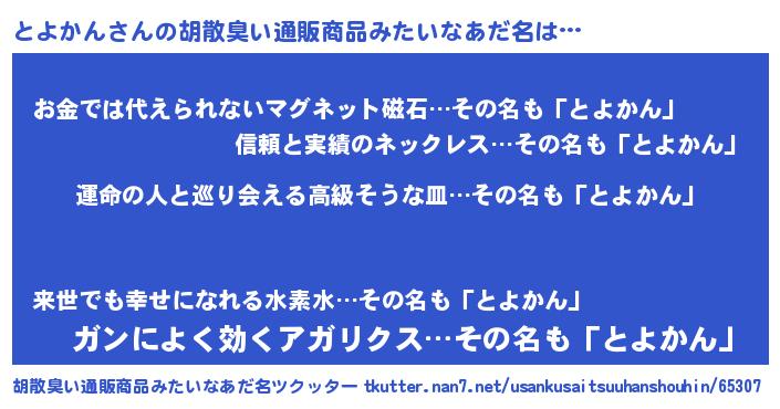 | 男性向けラノベタイトル風あだ名 | 『とよかんに滅ぼされるだけの簡単なお仕事です』 |