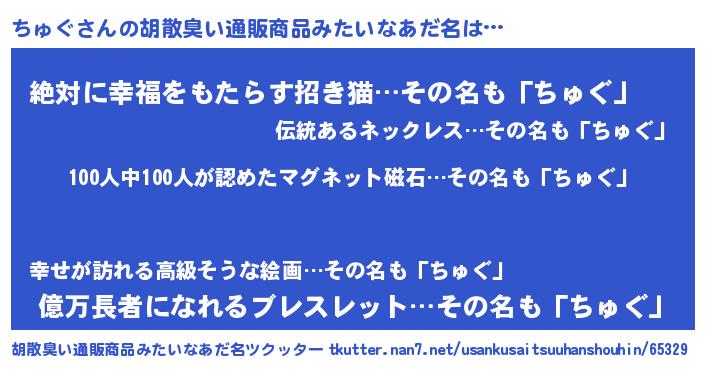 | ヘコむあだ名 | 『ちゅぐ(笑)』『ちゅにー』『牛乳』 |
