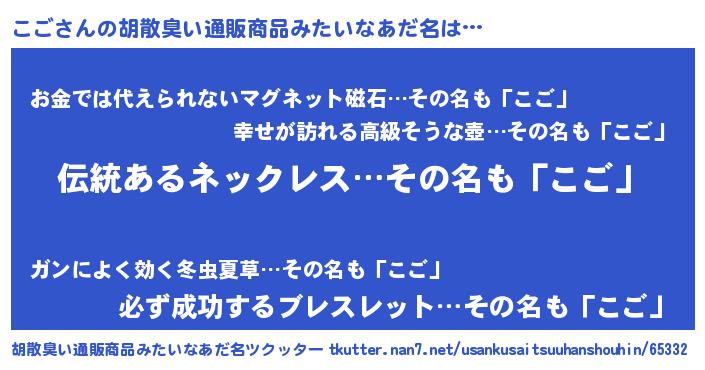 | ヘコむあだ名 | 『こごっ子』『こごっふぃ~』『牛乳』 |