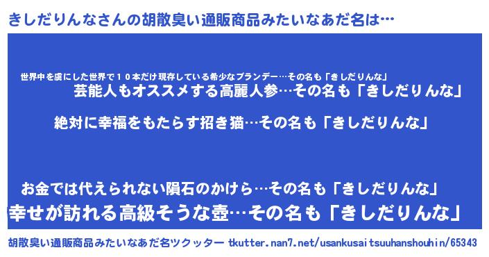 きしだりんなさんの胡散臭い通販商品みたいなあだ名をツクッター!