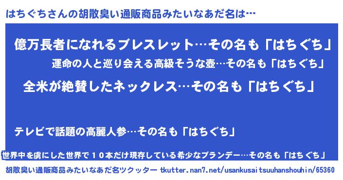 | 男性向けラノベタイトル風あだ名 | 『はちぐちの嫁は女の子じゃないと思った?』 |