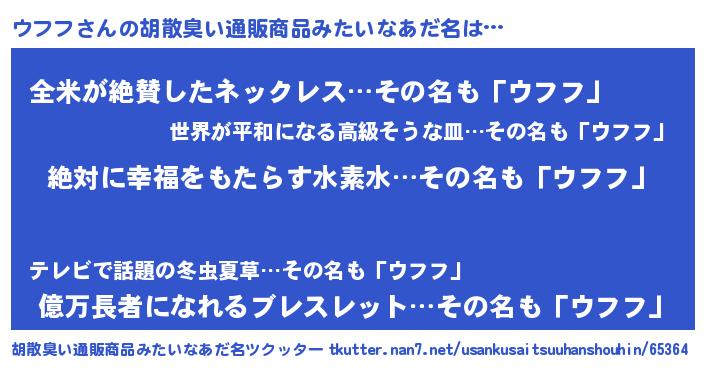 | ヘコむあだ名 | 『ウフフ(震え声)』『ウフっぺ』 |