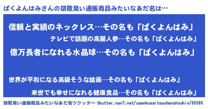 | ヘコむあだ名 | 『ぱくふぇ~』『ぱくを』『つくし』 |