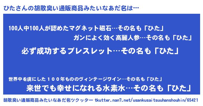 | 男性向けラノベタイトル風あだ名 | 『はたらくひたさま!』『ひたの憂鬱』 |
