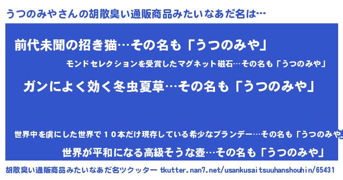 | 女子向けラノベタイトル風あだ名 | 『うつのみやなんてお断りですっ。』 |
