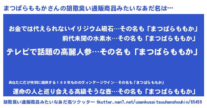 | ヘコむあだ名 | 『なまこ酢』『まつばらももか(笑)』 |