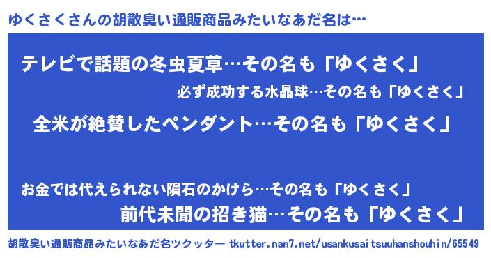 | ヒーロー風カッコイイあだ名 | 『天弓騎士ユク』『サイバー戦士ユクサク』 |