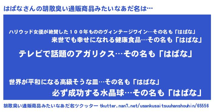 | 意味不明あだ名 | 『自称はばな』『住所不定無職はばな(3歳)』 |