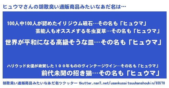 | ヘコむあだ名 | 『豆乳』『ヒュウマ(笑)』『ヒュを』 |