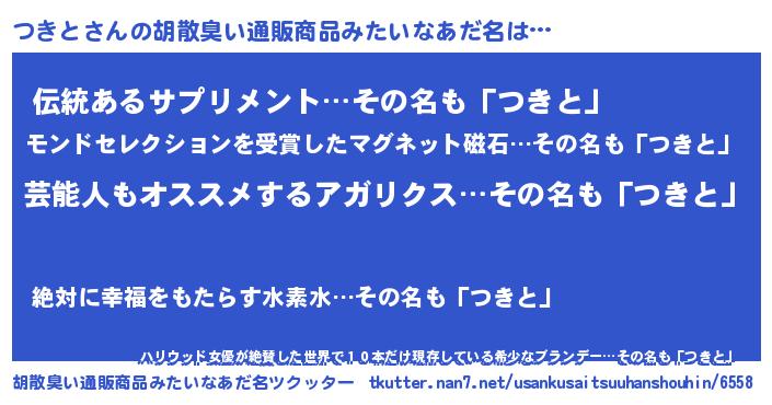 | ヒーロー風カッコイイあだ名 | 『最強戦士ツキト』『銀牙騎士ツキ』 |