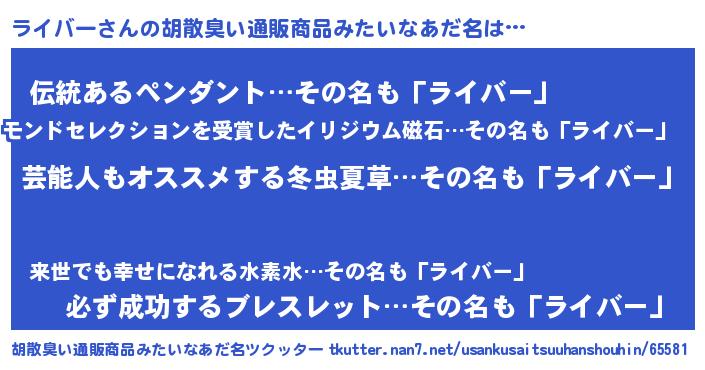 | 男性向けラノベタイトル風あだ名 | 『Re:ライバーから始める異世界生活』 |