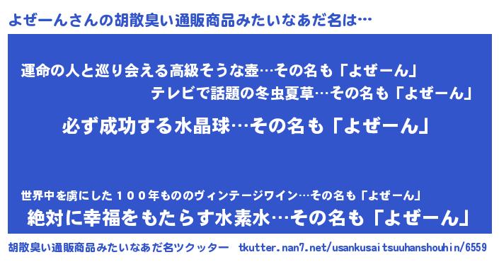 | ヘコむあだ名 | 『よぜふぇ~』『酢こんぶ』 |