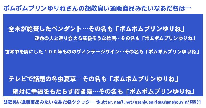 | 意味不明あだ名 | 『住所不定無職ポムポムプリンゆりね(1歳)』 |