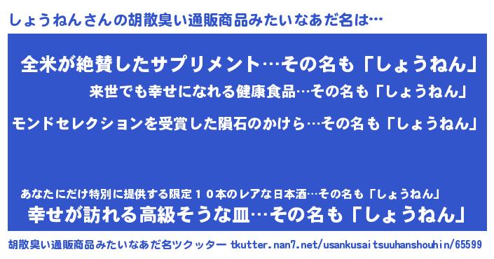 | 男性向けラノベタイトル風あだ名 | 『ノーゲーム・ノーショウネン』 |