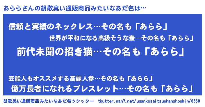 | 恥ずかしいあだ名 | 『あらちん』『アラリンリン』 |