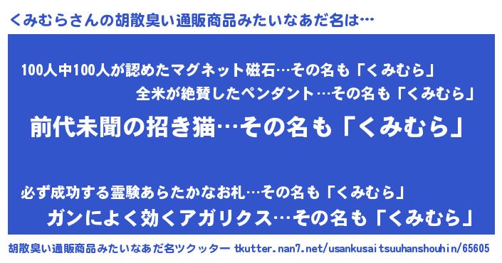 | ヘコむあだ名 | 『くみむら(笑)』『くみお』『豆乳』 |