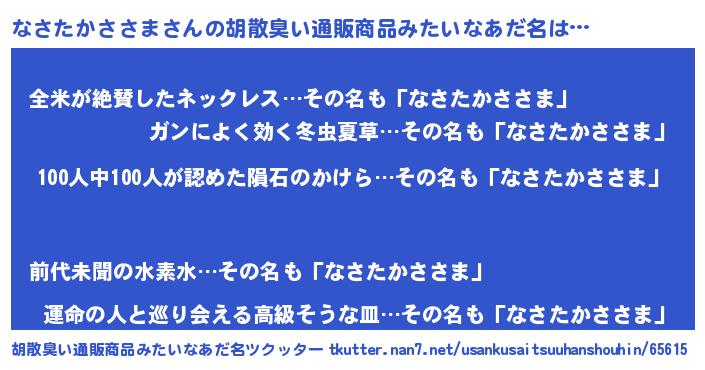 | ヒーロー風カッコイイあだ名 | 『正義の使者なさたかささま』 |