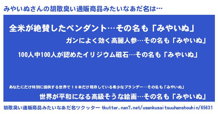 | 欧米人風あだ名 | 『ダニエルみやいぬ』『ウサインみやいぬ』 |