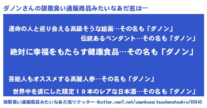 | 男性向けラノベタイトル風あだ名 | 『ダノンという概念が存在しない退屈な世界 』 |