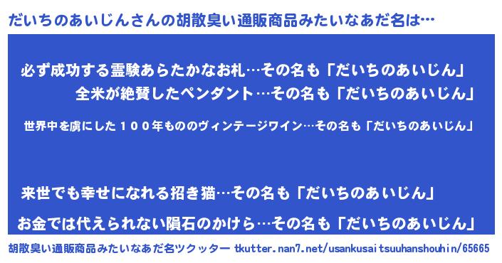 | 男性向けラノベタイトル風あだ名 | 『転生したらだいちのあいじんだった件』 |
