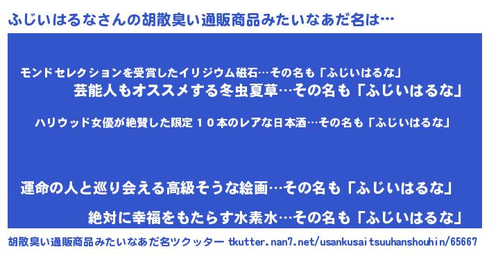 | 意味不明あだ名 | 『住所不定無職ふじいはるな(41歳)』 |