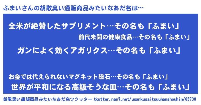 | 意味不明あだ名 | 『自称ふまい』『とにかく怪しいふまい』 |