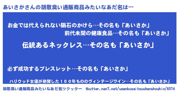 | ヘコむあだ名 | 『あいっ子』『あいさか(笑)』 |