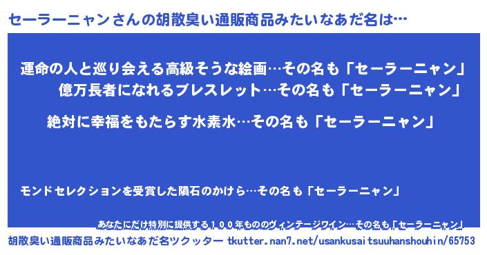 | 意味不明あだ名 | 『永久保存セーラーニャン』 |