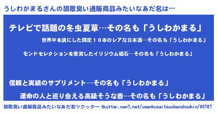 | 伝説のあだ名 | 『救世主となる占い師うしわかまる』 |