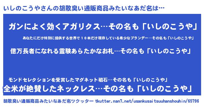 | ヘコむあだ名 | 『いしもー』『いしを』『酢こんぶ』 |