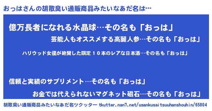 | 意味不明あだ名 | 『住所不定無職おっは(53歳)』『自称おっは』 |