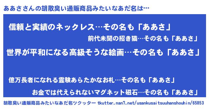 | ヒーロー風カッコイイあだ名 | 『ウルトラああさマン』『黄金騎士アア』 |