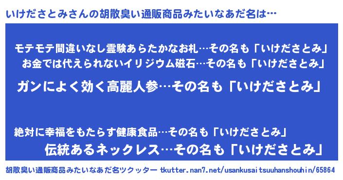 | 男性向けラノベタイトル風あだ名 | 『イケダサトミスレイヤー』 |