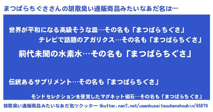 | ヘコむあだ名 | 『まつばらちぐさ(震え声)』『豆乳』 |