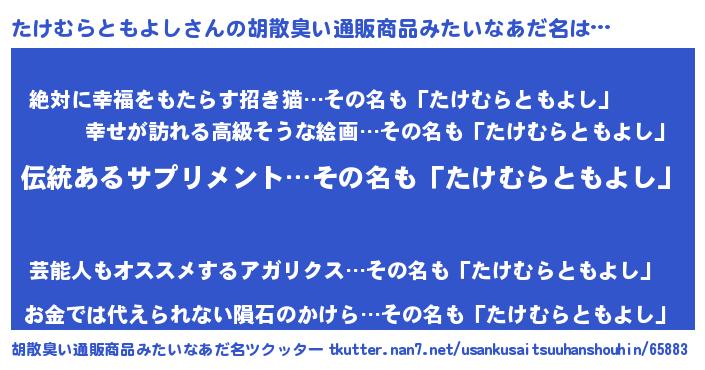| ヘコむあだ名 | 『たけを』『たけむらともよし(小並感)』 |