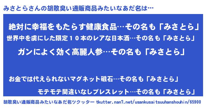 | ヘコむあだ名 | 『みさとら(笑)』『みさにー』『豆乳』 |