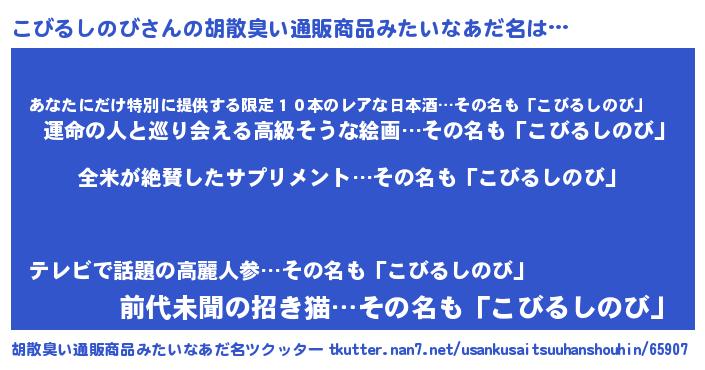 | 欧米人風あだ名 | 『ウサインこびるしのび』 |