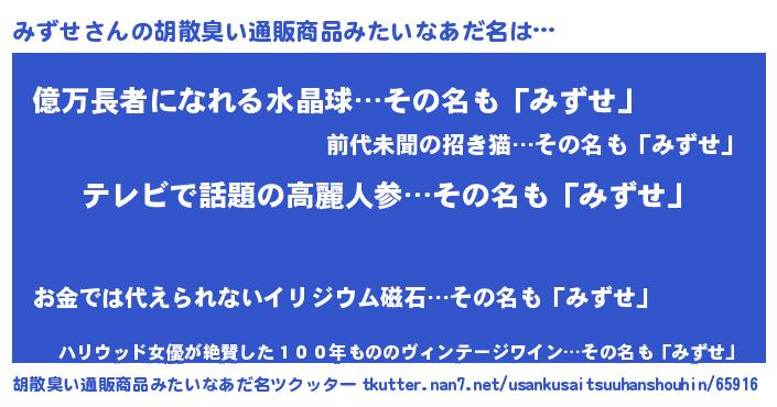 | ヘコむあだ名 | 『みずふぇ~』『みずせ(爆)』 |