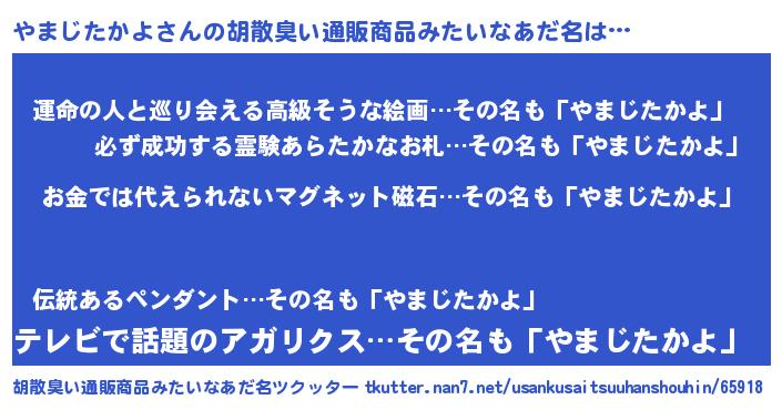 | 肩書あだ名 | 『やまじたかよ船長』『やまじたかよ総統』 |