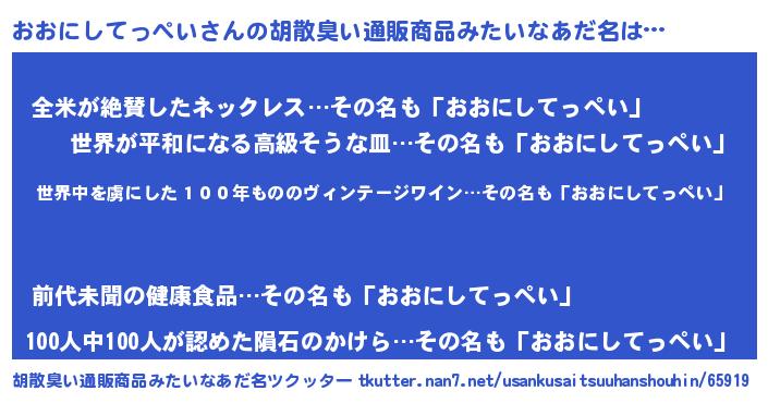 | 意味不明あだ名 | 『住所不定無職おおにしてっぺい(1歳)』 |