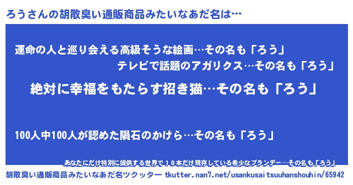 | ヒーロー風カッコイイあだ名 | 『ネオロウ』『ウルトラろうマン』 |