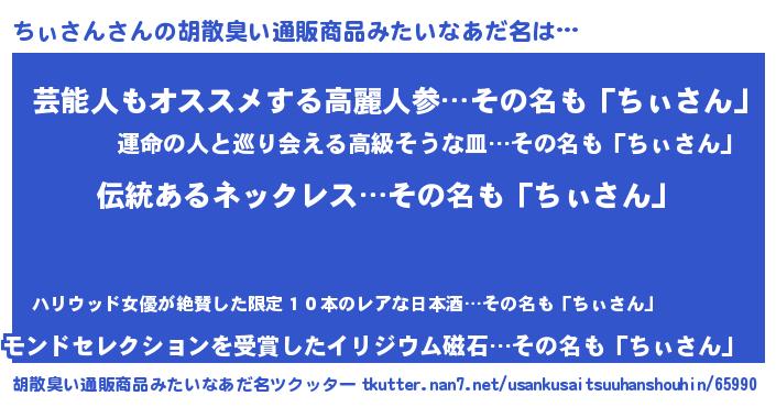 | 意味不明あだ名 | 『とにかく怪しいちぃさん』 |