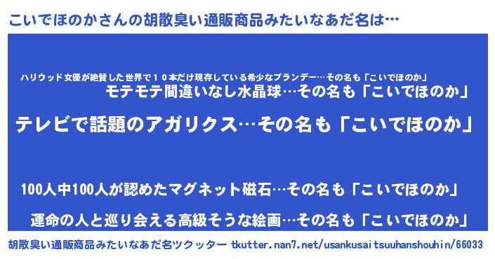 | 女子向けラノベタイトル風あだ名 | 『こいでほのかアンティーク』 |