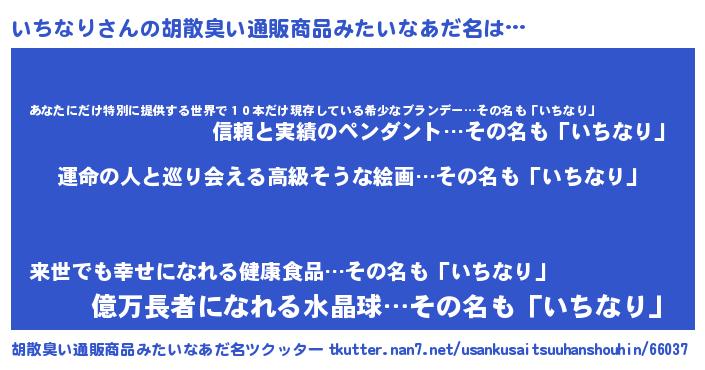 | 恥ずかしいあだ名 | 『いちっちょ』『プリティーいちなり』 |