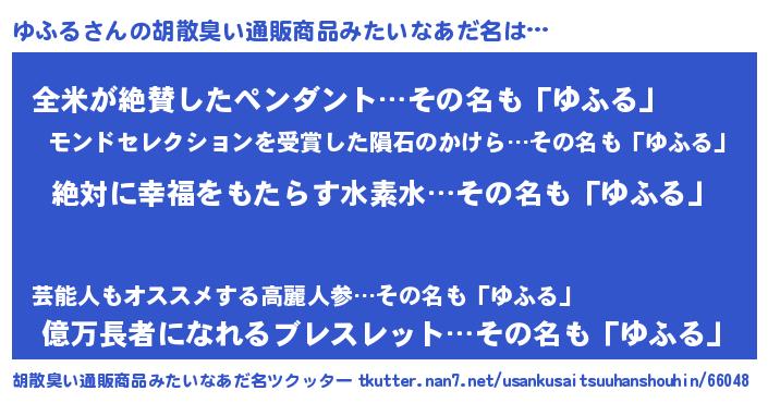 ゆふるさんの胡散臭い通販商品みたいなあだ名をツクッター!