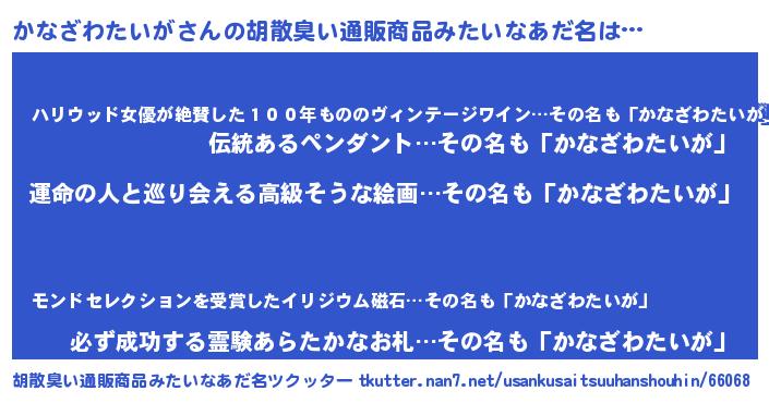 | 意味不明あだ名 | 『かなざわたいがフォーエバー』 |
