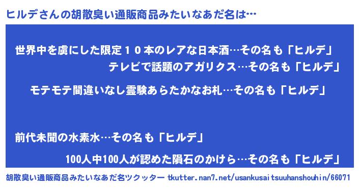 | ヒーロー風カッコイイあだ名 | 『スーパーヒルデ』『仮面ヒルダー』 |