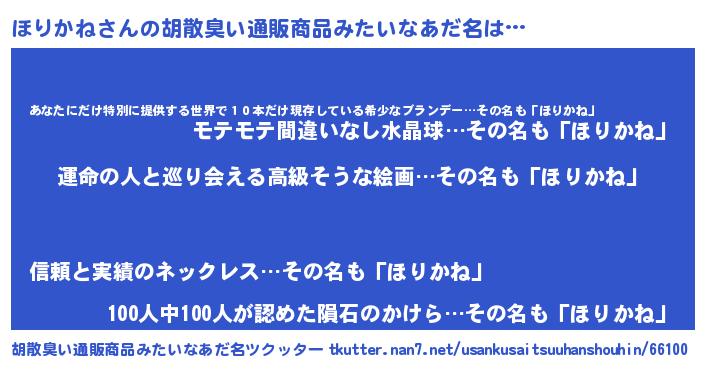 | 男性向けラノベタイトル風あだ名 | 『ほりかね~年齢イコール彼女いない歴の魔法使い~』 |